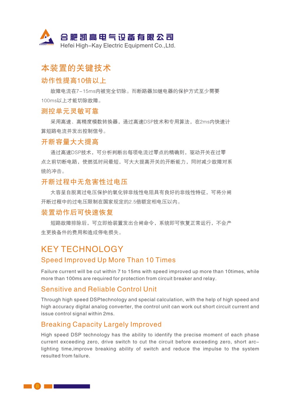 可恢復式大容量高速開關裝置更能夠用于需要快速開斷大電流的場合。當系統發生短路故障時能夠快速切除故障,不會引起系統電壓陡降等不安全因素,避免造成發電機和系統過電壓沖擊,保護系統安全運行。